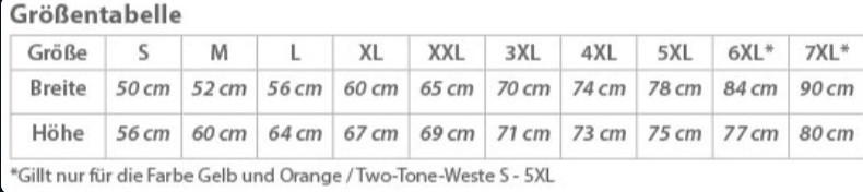 Größentabelle
